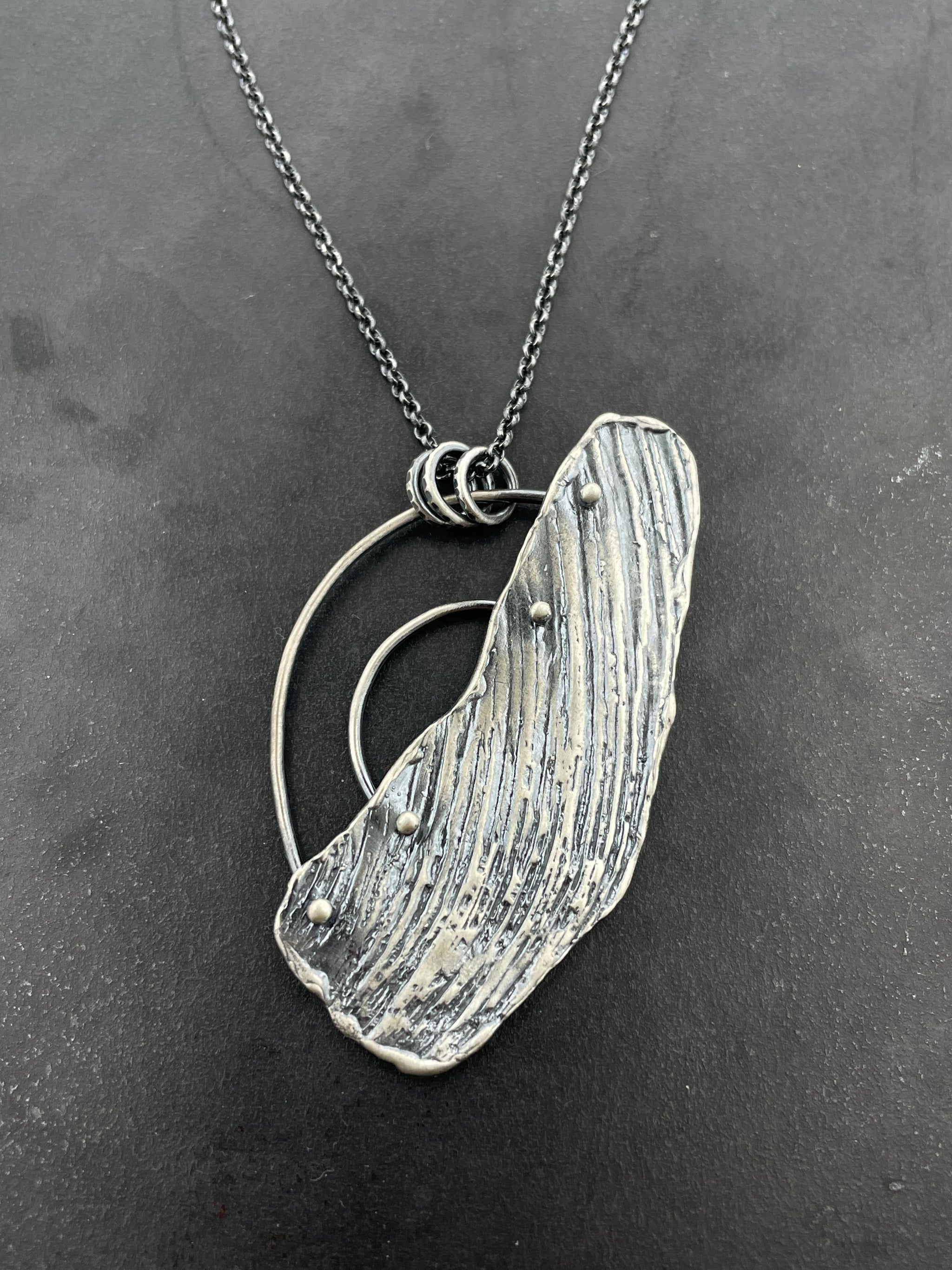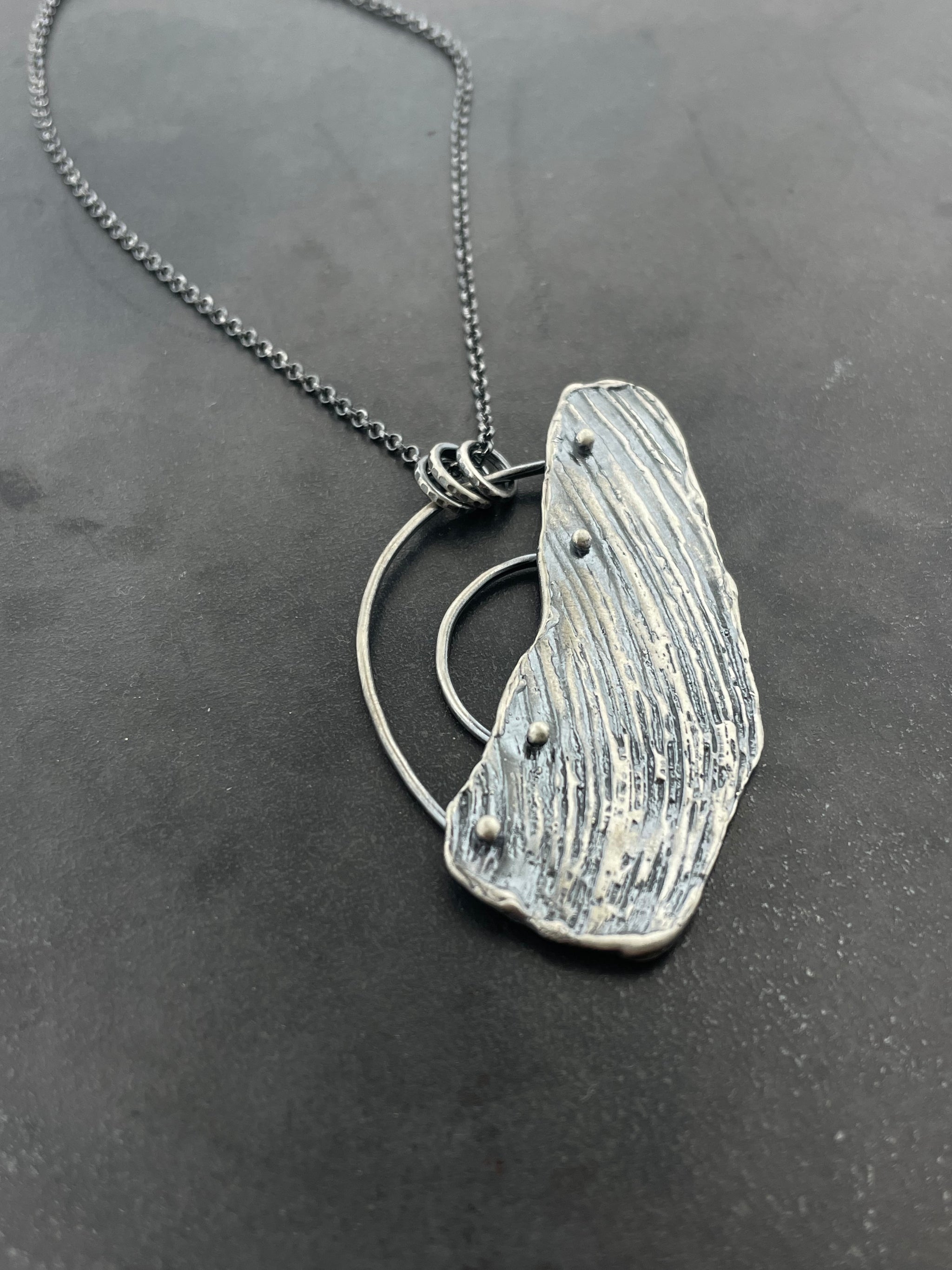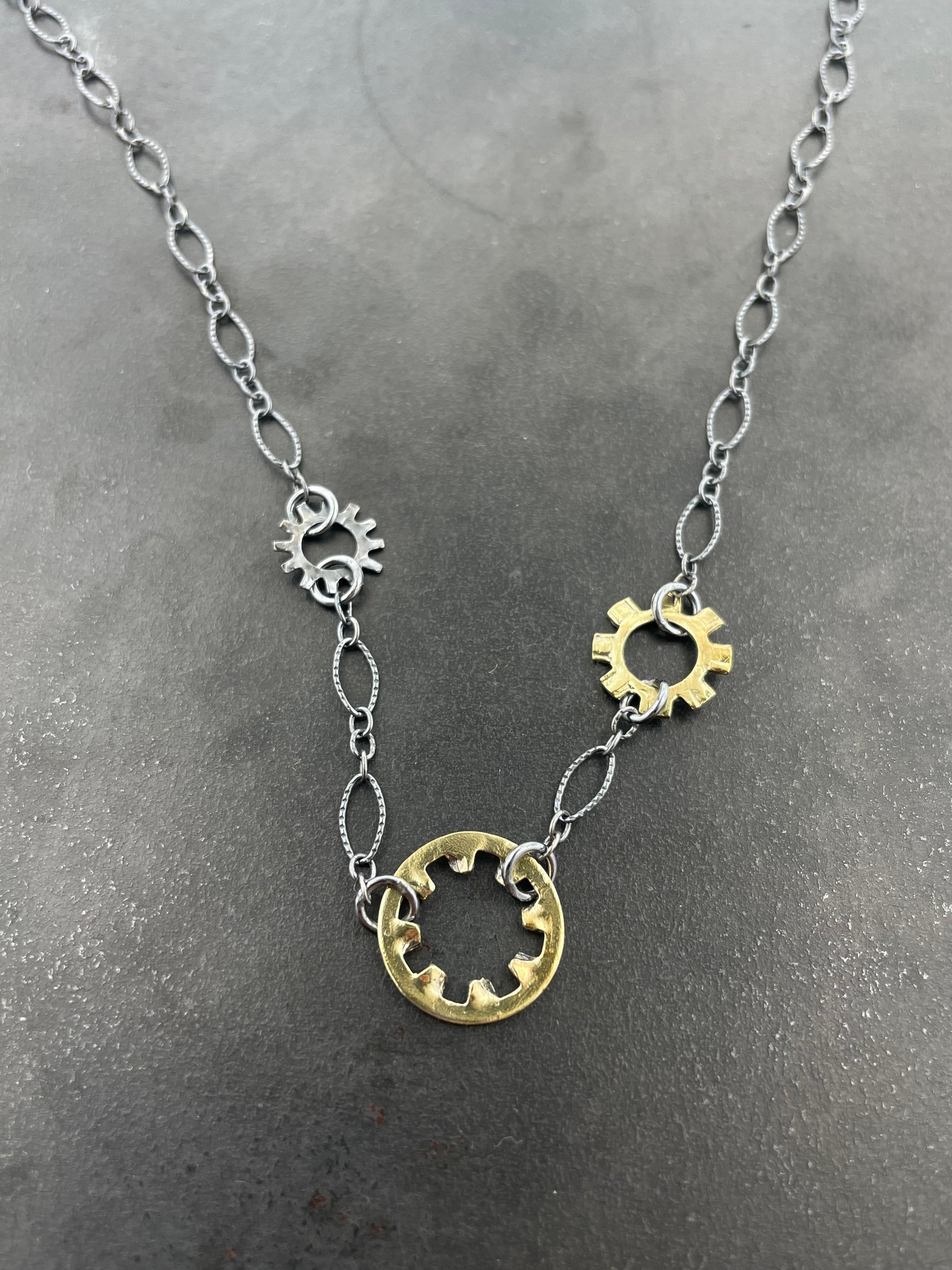 Kinda gritty, kinda flirty... that's the secret. Perfect over-the-head layering piece, is SO easy, you'll probably wear it everyday. sterling silver bolt cast from found object variety of chain long...