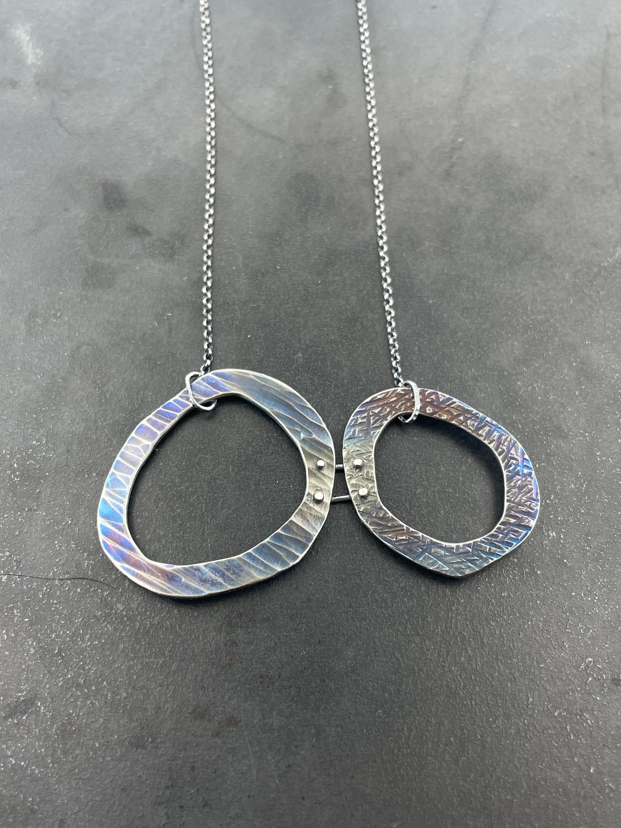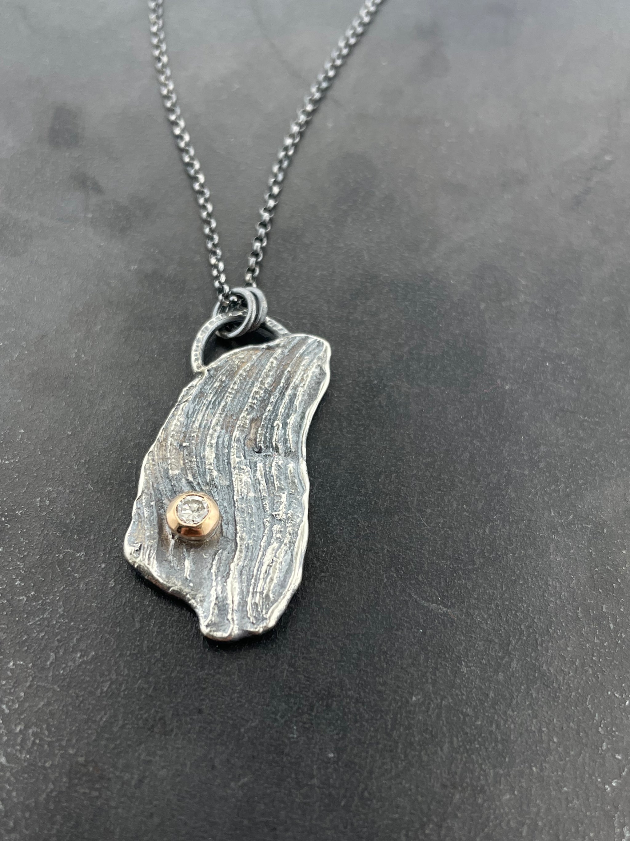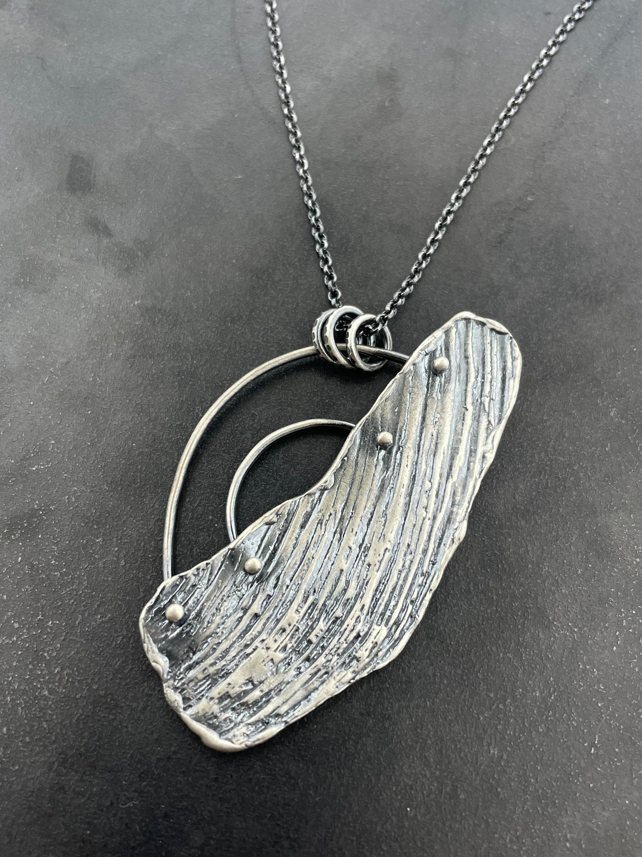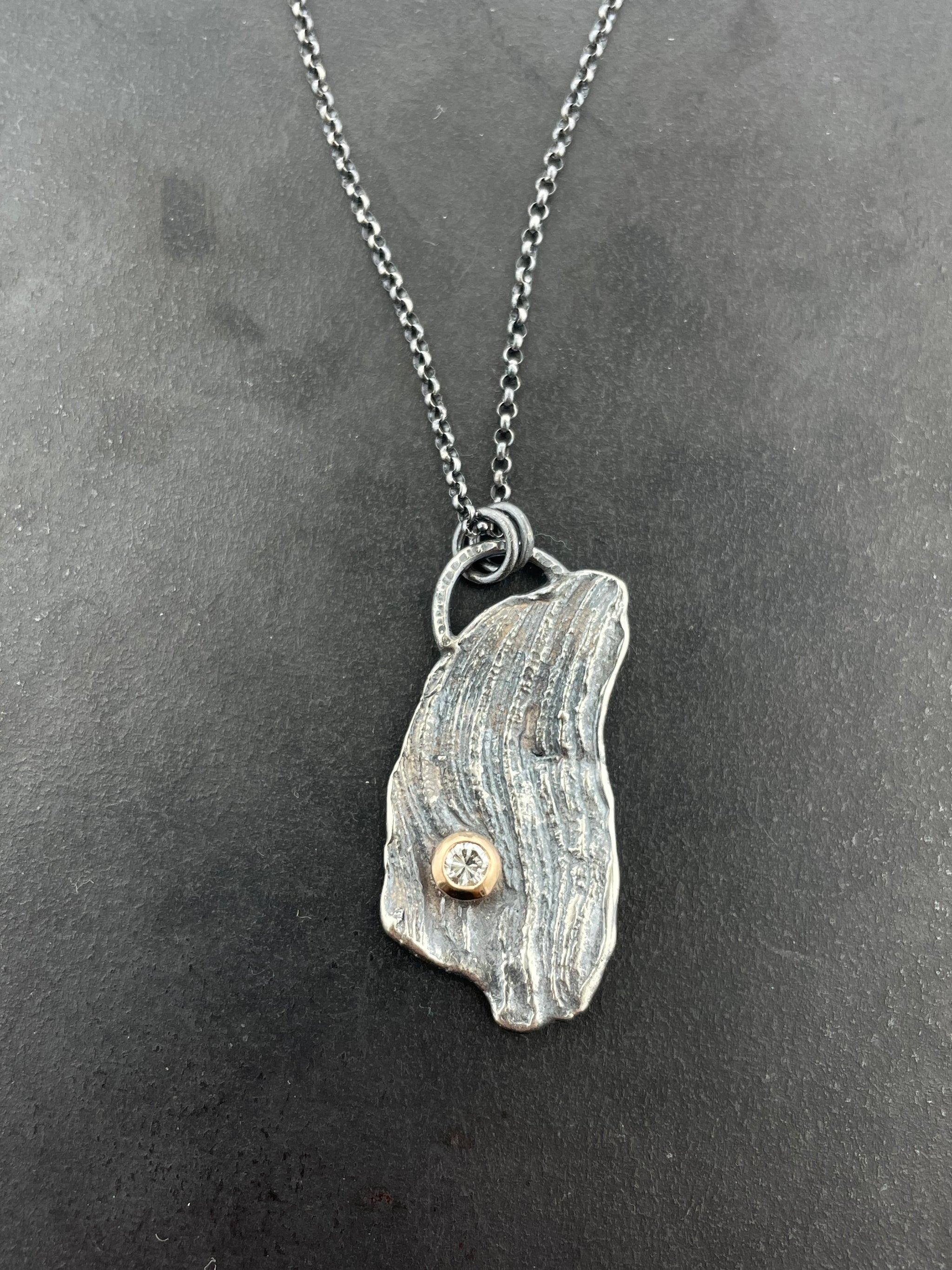 Kinda gritty, kinda flirty... that's the secret. Perfect over-the-head layering piece, is SO easy, you'll probably wear it everyday. sterling silver bolt cast from found object variety of chain long...